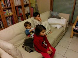 Cet après-midi, pendant que je me remettais de ma course de matin (en végétant dans le lit, pour tout dire...), Frédérique a emmené les enfants au cirque. Au programme : de la magie, des animaux (le serpent les a impressionnés), un dompteur avec 2 lionnes du Kenya, des clowns, des jongleurs avec des torches en feu... Bref, de quoi occuper cet après-midi pluvieuse !!